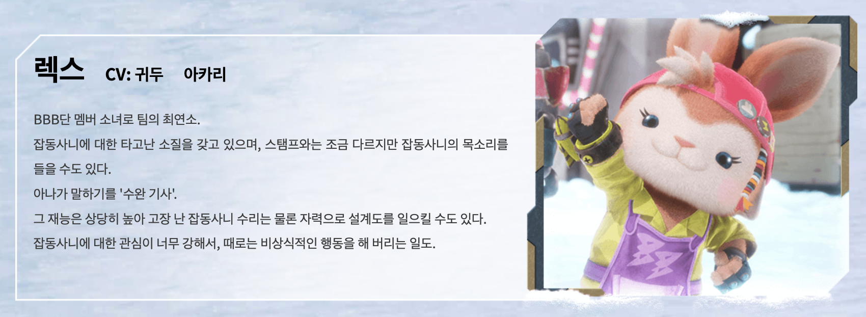 캐릭터명 특징 성우