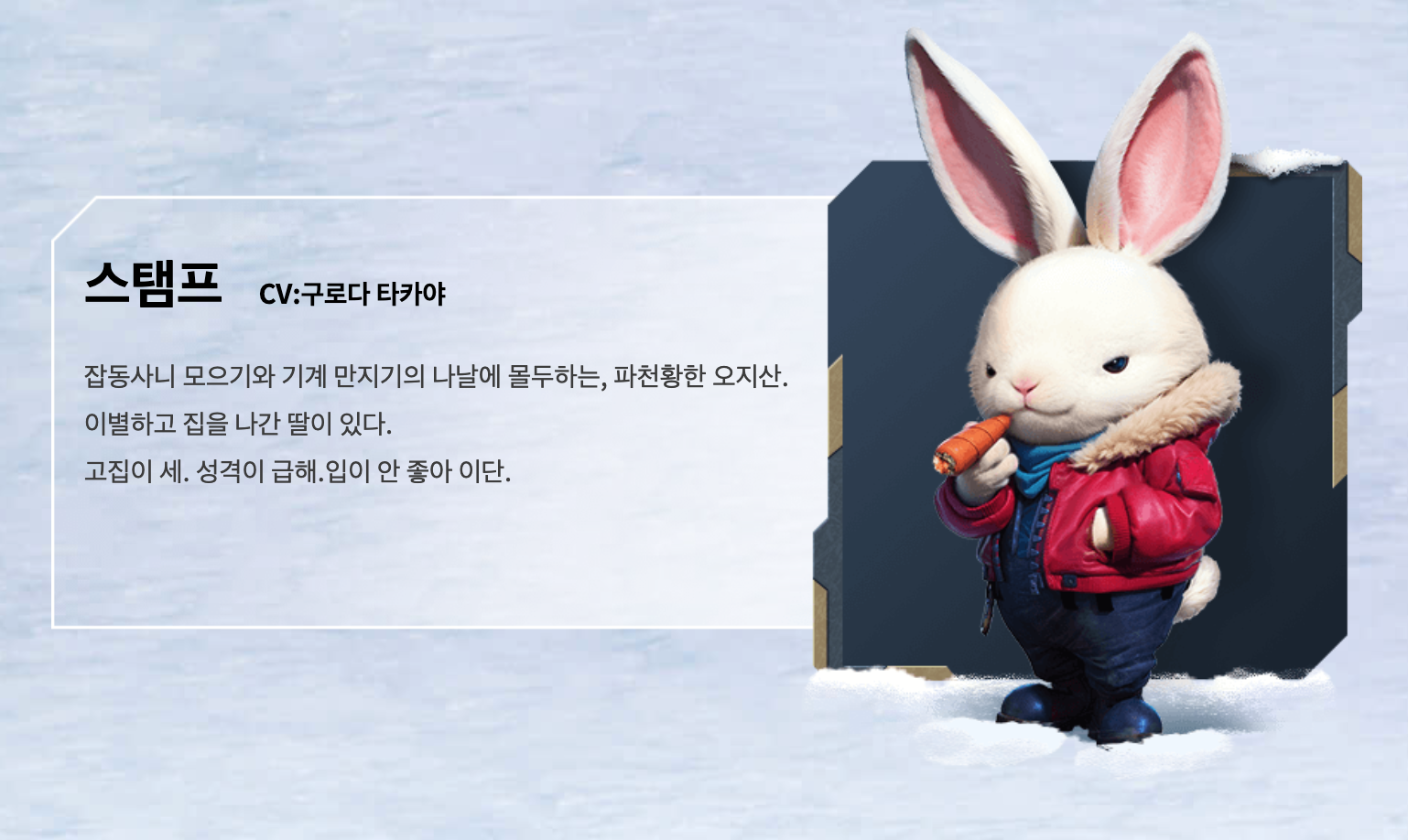 게임의 주인공은 중년 토끼 ‘스탬프’, 애칭은 ‘Rusty(러스티)’.