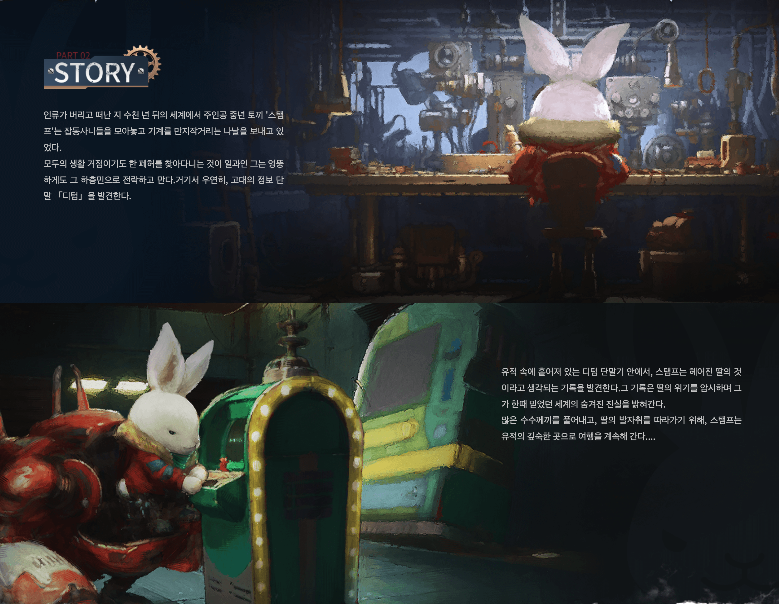 『Rusty Rabbit』은 폐허라는 다소 어두운 세계관 속에서도,