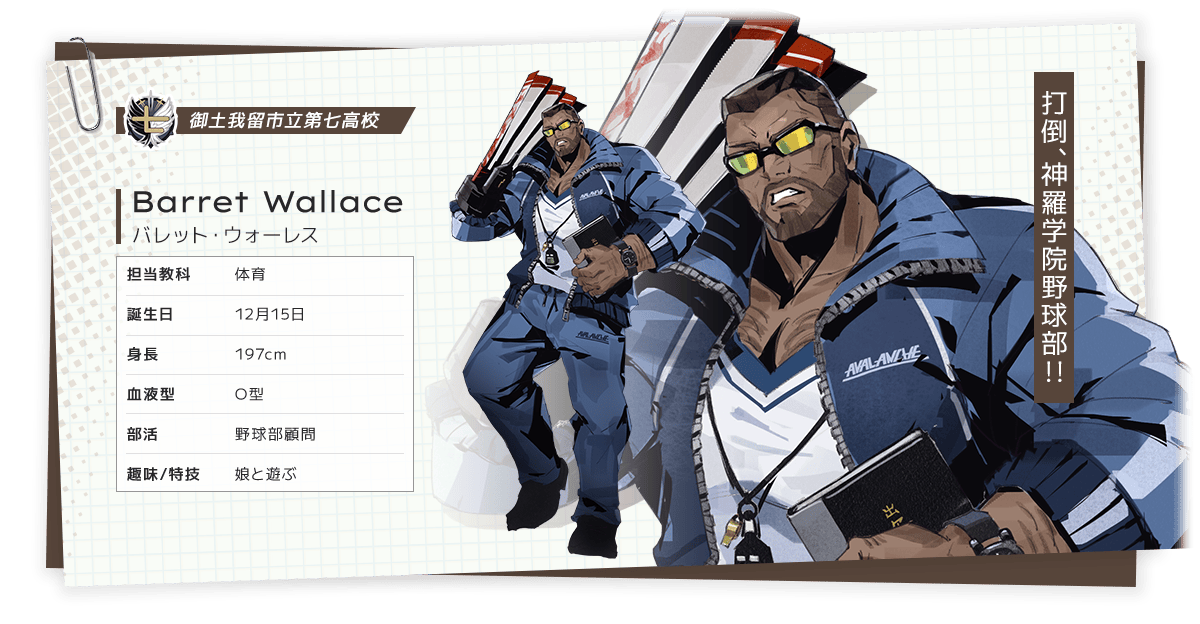 티파는 반장 + 학급 위원장 역할로, 반듯하고 성실한 타입. 클라우드와는 티격태격하면서도 은근히 챙겨주는 그 관계가 이번에도 살짝 유지됩니다. 여기에 열혈 체육 교사 바렛, 留年생이지만 싸움 실력만은 최고인 자크스 등 주변 인물들도 모두 학원 스타일로 재해석되어 등장합니다.