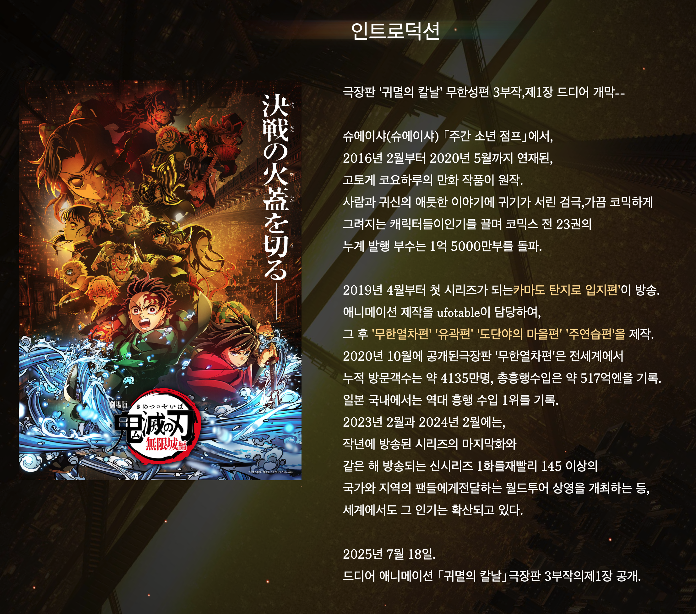 [귀멸의 칼날 무한성편 공식 홈페이지]