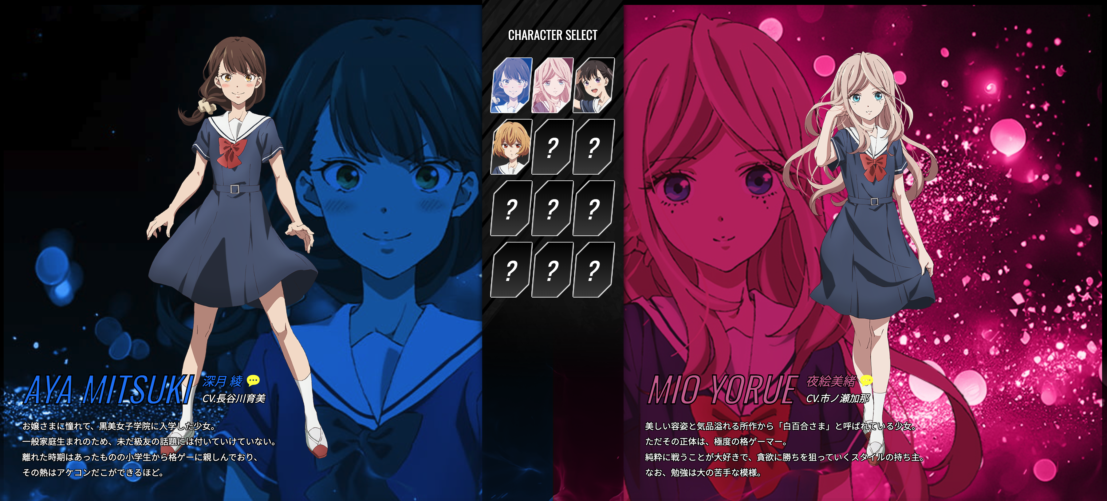이번에 공개된 티저 PV에서는, 아야(CV. 하세가와 이쿠미 長谷川育美)와 미오(CV. 이치노세 카나 市ノ瀬加那)가 《스트리트 파이터 6》로 실전을 펼치는 장면이 그려졌습니다!